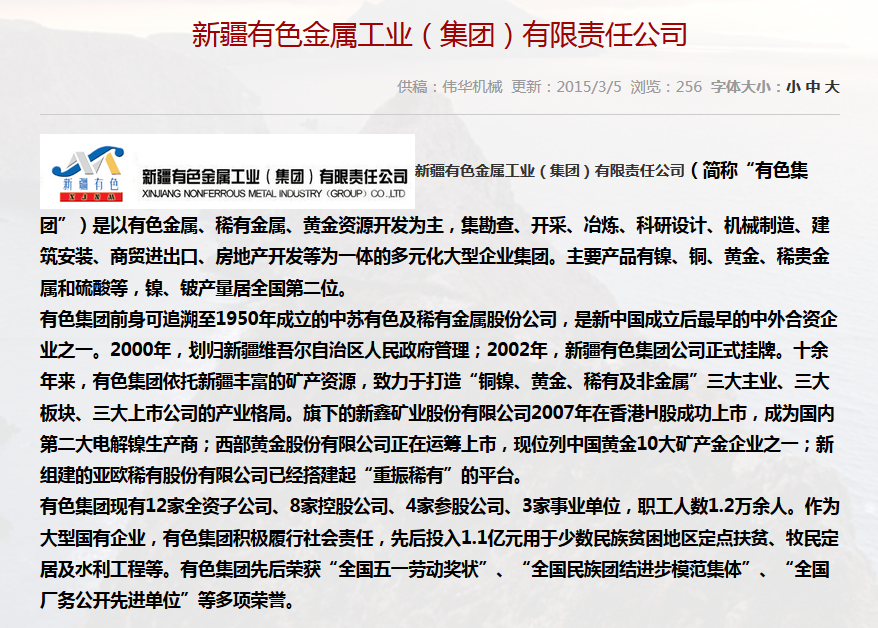 合作單位:新疆有色金屬工業(yè)(集團)有限責任公